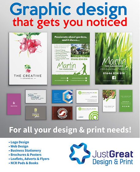 Just Great Design and Print is a Graphic Design Studio based in Pembroke who has helped businesses in Pembrokeshire and around the world with their advertising, branding, logos, brochures, leaflets, catalogues, packaging, exhibitions and websites.